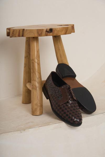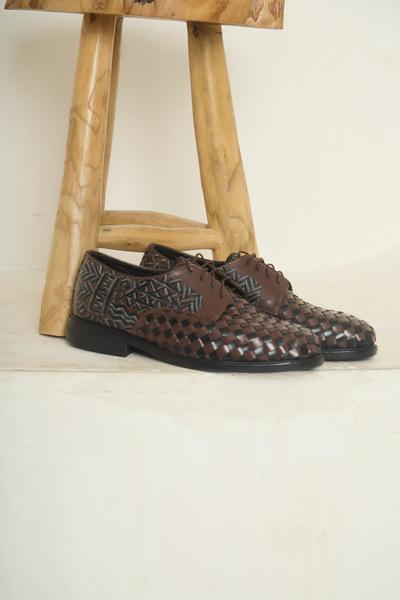 The Woven Oxford combines handwoven leather strips with storytelling art from the Yoruba kingdom, blending heritage artistry with modern structure. A lace-up Derby designed for the bold gentleman.