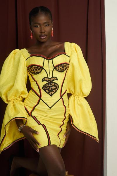 Channelling the vibrance of Yoruba masquerade, the Masquerade Mini Dress is a bold,